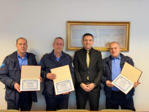 Today, the Director General of the Kosovo Correctional Service, Ismail Dibrani, and the Deputy Director General, Ridvan Hot, presented certificates of appreciation to Dr. Ardita Bytyqi, and correctional officers Idriz Maliqi, Velko Vujoviç, Naser Fazliu, Xhelal Haxhiu, Vladan Filiç, and Egzona Vishesella.