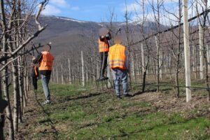 As part of agricultural activities at the Dubrava Correctional Center, the apple pruning process has begun in the plantation. This activity is carried out by inmates under the supervision of the responsible staff.