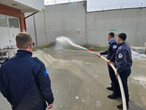At the Detention Center in Pristina, correctional officers conducted practical training on firefighting and life-saving.
